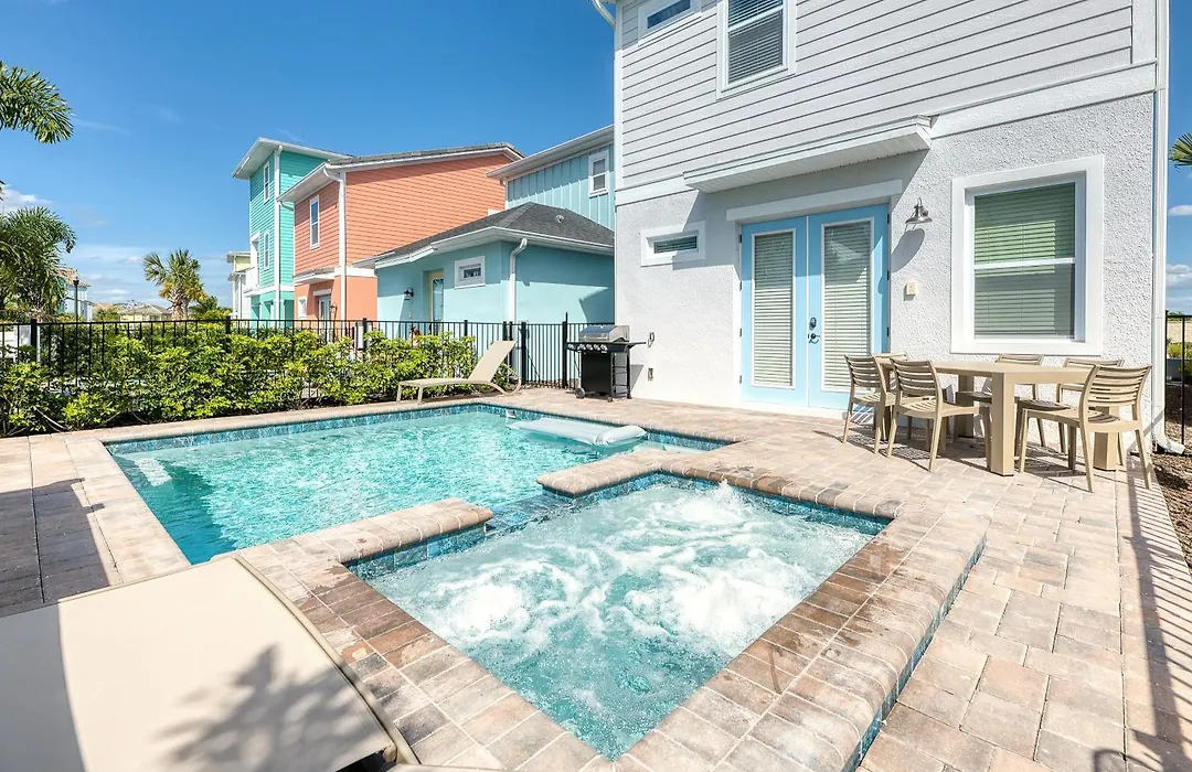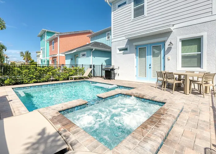 Die 2-Zimmer- Refreshing Blue Cottage Near Disney With Margaritaville Resort & Island H20 Waterpark Access - 2942Sr Kissimmee, die knapp 3 Kilometer vom Disney's Animal Kingdom Freizeitpark entfernt liegt, verfügt über einen Swimmingpool sowie den Jacuzzi zur Entspannung. Die Familien- Villa befindet sich nur 16 Fußminuten vom Emerald Island Boulevard entfernt und verfügt über eine Terrasse.